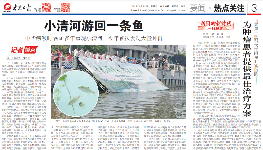 5月20日,山東省政府新聞辦召開新聞發(fā)布會,濟南市生態(tài)環(huán)境局黨組書記、局長肖紅介紹,小清河濟南段發(fā)現(xiàn)了大量中華鳑鲏種群。央視網(wǎng)、中國日報、大眾日報、閃電新聞、齊魯晚報、濟南時報等新聞媒體紛紛報道。