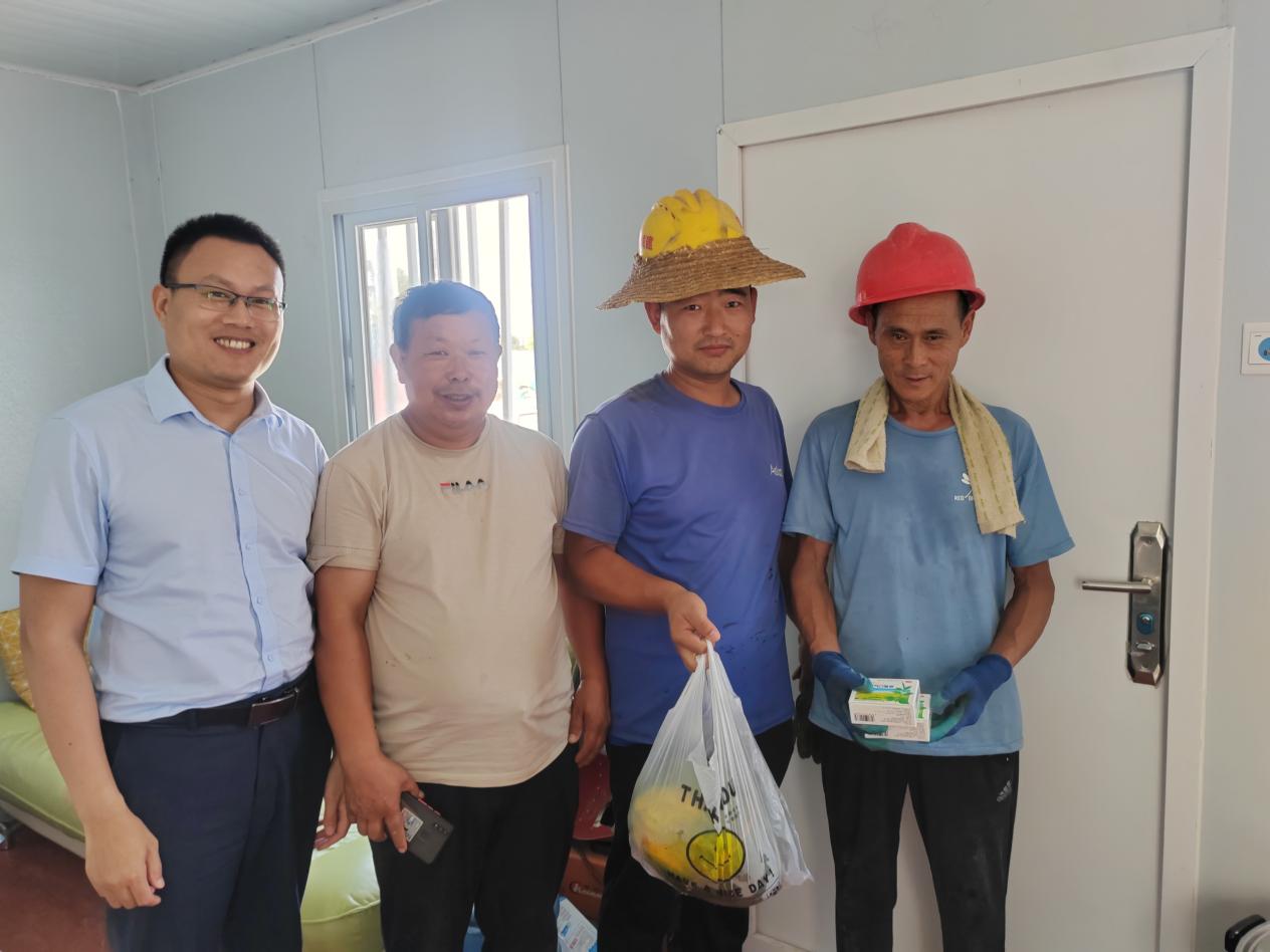 在項目現(xiàn)場,工作人員向在崗奮斗的工人們送上慰問品和誠摯的問候,提醒員工合理調(diào)整高溫天氣作業(yè)休息時間,加強防暑降溫和勞動保護工作。在集團領(lǐng)導(dǎo)的慰問和關(guān)懷下,大家深受感動,紛紛表示:這樣一份貼心的關(guān)愛讓他們在炎炎夏日中感受到了絲絲涼意,讓大家都能以飽滿的斗志、良好的狀態(tài)投入到工作中去。